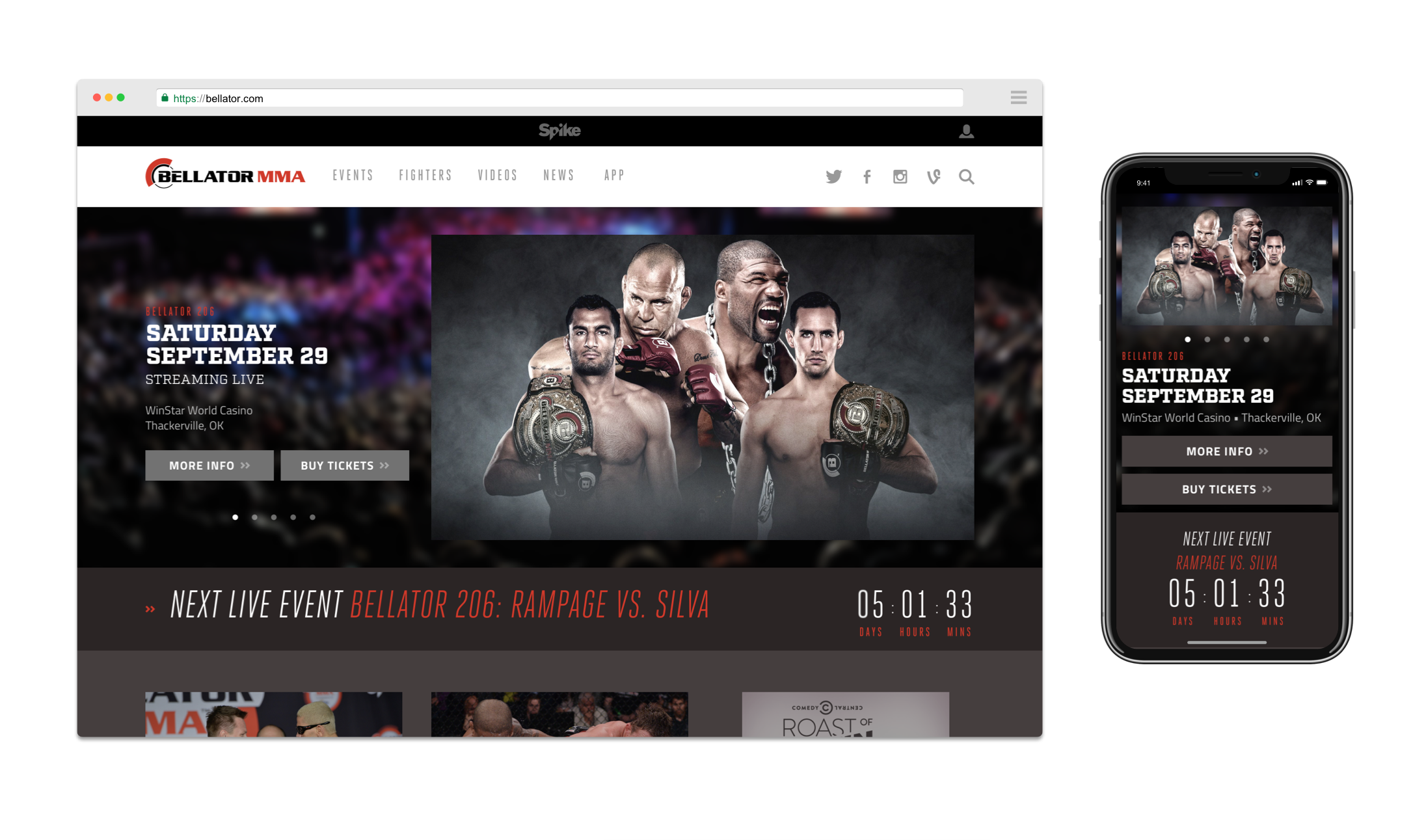 Bellator needed a brand new mobile and desktop experience to support a wide range of devices and audiences.
